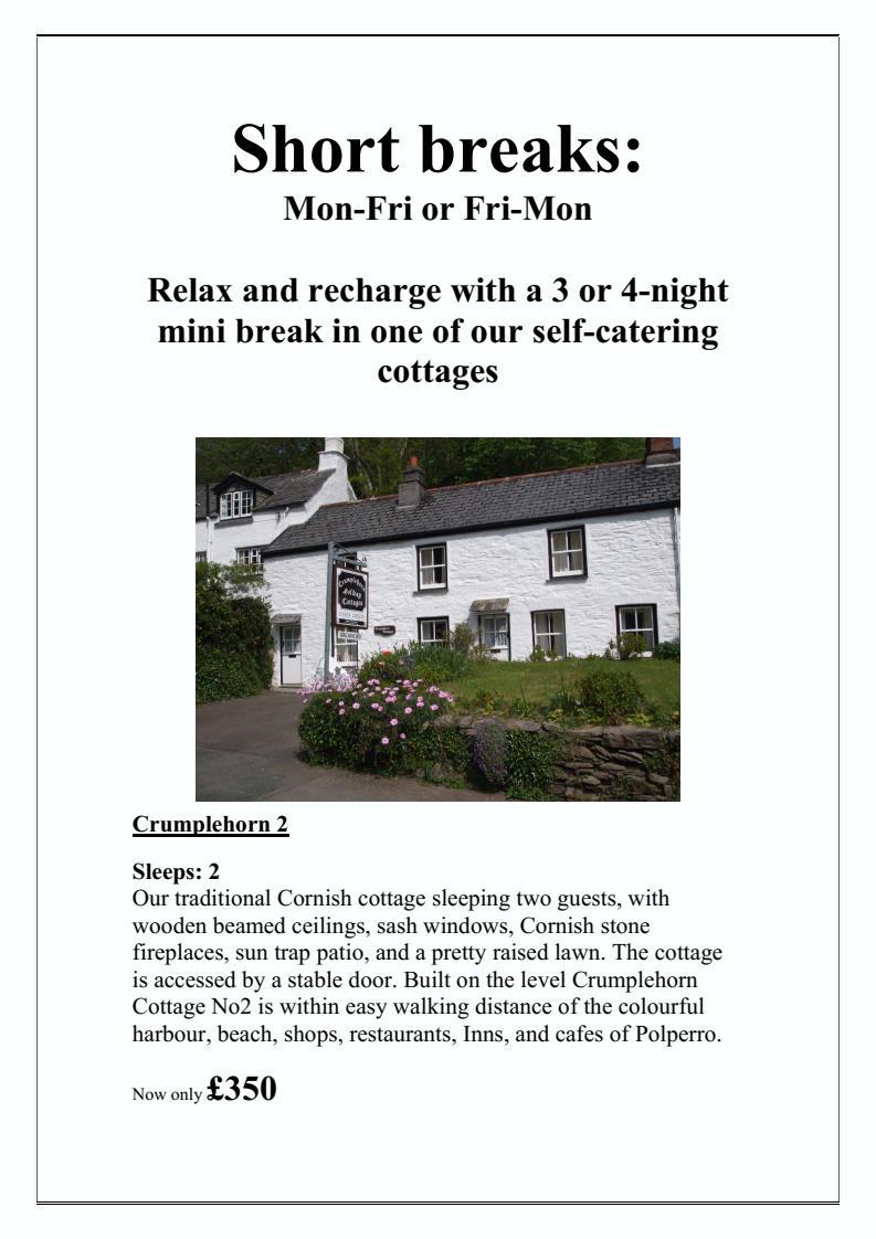 Polperro - Short Breaks (Monday - Friday or Friday - Monday)